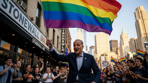 Ladies and gentlemen, gather ’round as we delve into the latest episode of “Chuck Schumer and the Quest for the Rainbow Flag.” Yes, the senator from New York